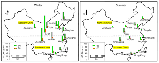例如:我国14个城市大气中碳中国太阳成集团tyc7111cc浓度的分布图(Cao et al., 2007)